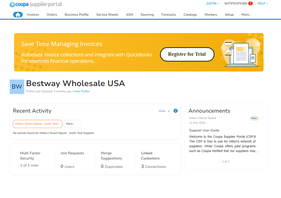 This should only be used when the user you are wanting to add to Hilton’s account already has a Coupa Supplier Portal account.