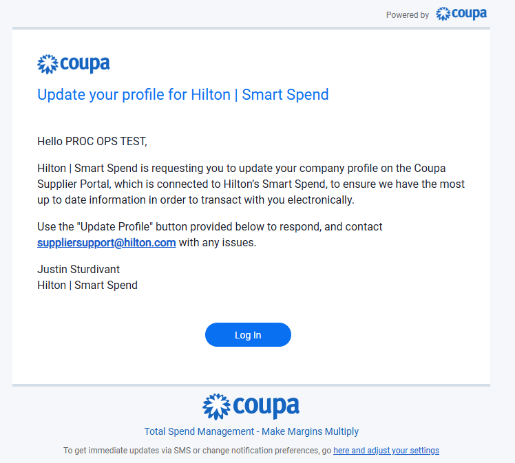 If you already have a registered Coupa Supplier Portal account you should receive an email with a Login to Coupa link