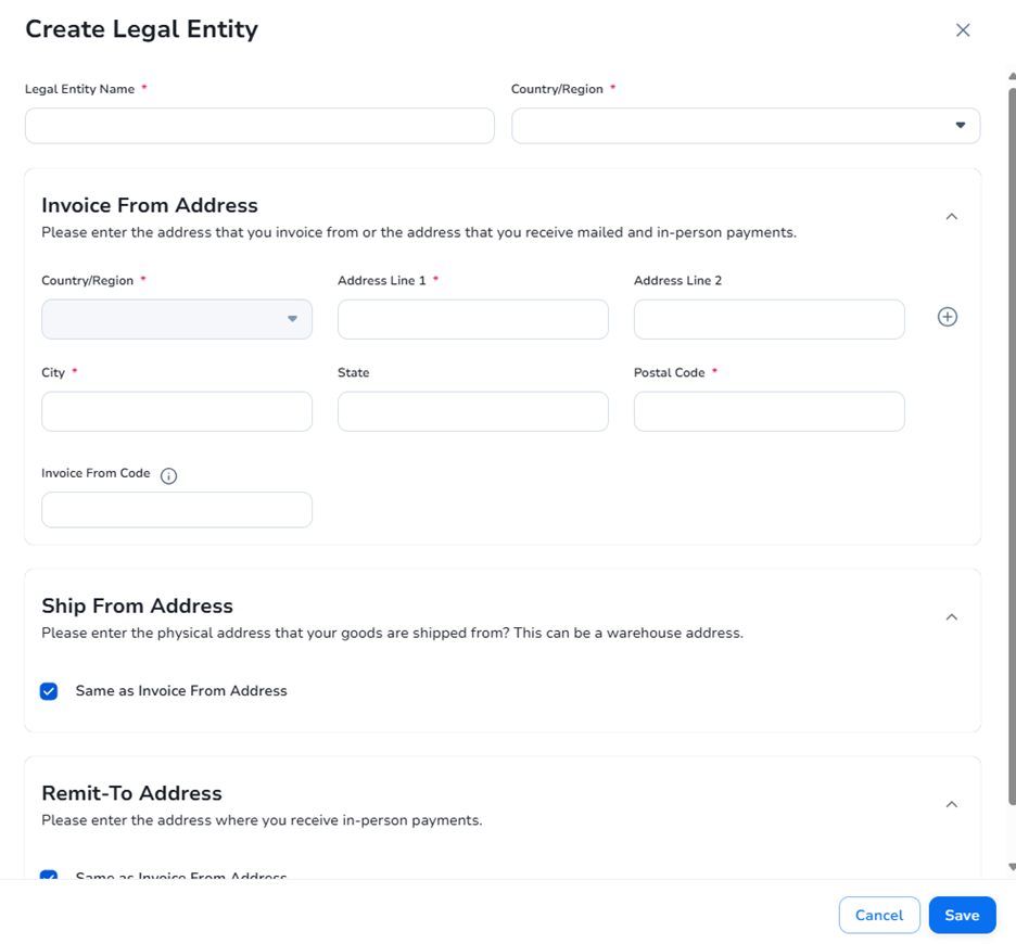 When you complete the Hilton onboarding form, you will be prompted to complete a legal entity setup. Alternatively, you can setup the legal entity under the Setup tab.